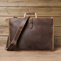 Mallette pour ordinateur portable haut de gamme en cuir véritable de vachette tanné végétal imperméable et souple pour hommes avec grande capacité